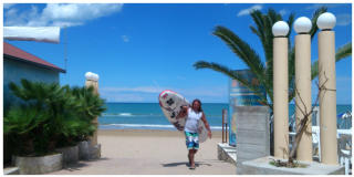 am Sporn des Stiefels von Italien  Für Windsurfer ist Vieste ein gut geeigneter Ort. Auf Grund der exponierten Lage herrscht dort fast täglich ein surf- und segeltauglicher Wind, dabei werden die vom Meer strömenden Winde von Campern als angenehm empfunden.   Zitat aus Wikipedia zu Stichwort Vieste